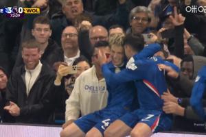 体育资讯11月09日讯 英超第11轮,切尔西对阵狼队。73分钟,加纳乔带球奔袭传中,内托轻松推射破门。内托破门后找加纳乔一起再现经典坐广告牌庆祝。