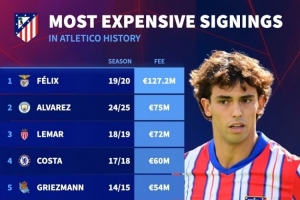 马竞队史最贵引援排名: