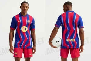 与20年前的经典蓝红条纹不同,巴塞罗那2025-26赛季第四球衣采用了蓝色和红色的锯齿形条纹,并带有浅蓝色的图形元素。