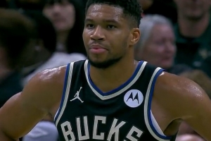 GIF-字母哥反击撞翻普拉姆利,欧洲步劈扣2+1,黄蜂挑战成功变进攻犯规