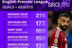 近9年英超参与进球榜:萨拉赫276球断崖领跑,孙、凯、丁丁列前四