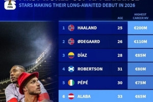 体育资讯11月20日讯 世界杯预选赛仅剩6个附加赛名额待定,多支国家队实现了晋级梦想,《转会市场》也列出了多位已经为世界杯首秀等待多年的名将。