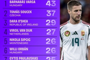 1.巴尔纳巴斯·瓦尔加(匈牙利),43次