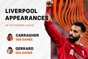 此役是萨拉赫代表利物浦出战的第300场英超,英超出场次数位列利物浦队史第五。