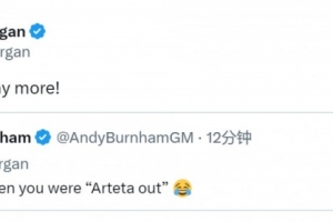 有球迷在社交媒体上调侃阿森纳球迷摩根:“我记得你喊过阿尔特塔下课(out)。”