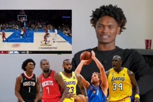 阿门选出了自己心目中的2K梦想五人组,分别是:阿门自己、杜兰特、詹姆斯、诺维茨基和奥尼尔。