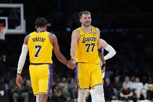 赛后湖人后卫文森特在个人社媒转发了湖人赢球海报,以及东契奇的个人数据海报。