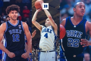 这是他赛季前8场比赛中,第二次砍下单场35分。自1985-86赛季NCAA引入投篮时间限制以来,杜克大学历史上只有三位球员做到过单赛季多次单场得分35+。另外两位是雷迪克(两个赛季做到,05-06赛季更是单赛季7次、其中包括3场40+)、杰伊·威廉姆斯(注:图中标注赛季有误,应为01-02赛季)