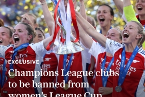 改革!电讯报:女足英超的欧冠参赛球队下赛季起不再参加联赛杯
