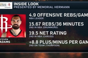 火箭主场迎战国王,转播方晒出亚当斯数据: