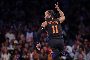 本场比赛,尼克斯球星布伦森表现不错,在37分钟的时间里,投篮16中9,三分球5中1,罚球8中7,拿到26分2篮板5助攻3抢断的数据,正负值+12。