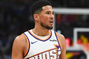 上半场比赛,布克出战19分16秒,投篮12中6,三分5中3,罚球2中2,得到17分6篮板4助攻。