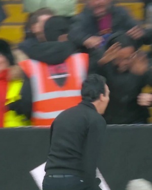 英超第15轮,阿斯顿维拉2-1阿森纳,读秒绝杀时埃梅里庆祝
