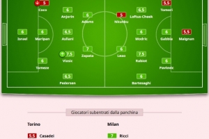 体育资讯12月9日讯 在米兰客场3-2逆转都灵的比赛后,《米兰体育报》为米兰本场比赛的出场球员进行了评分。