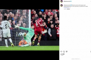 本场比赛库尔图瓦多次作出精彩扑救,他也在社媒晒出阻挡索博斯洛伊必进球照片,配文写道:“尽管球队付出了巨大努力,但遗憾的是这还不够。我们会扭转局势的。”