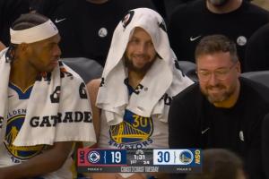 GIF-库里看着哈登苦笑